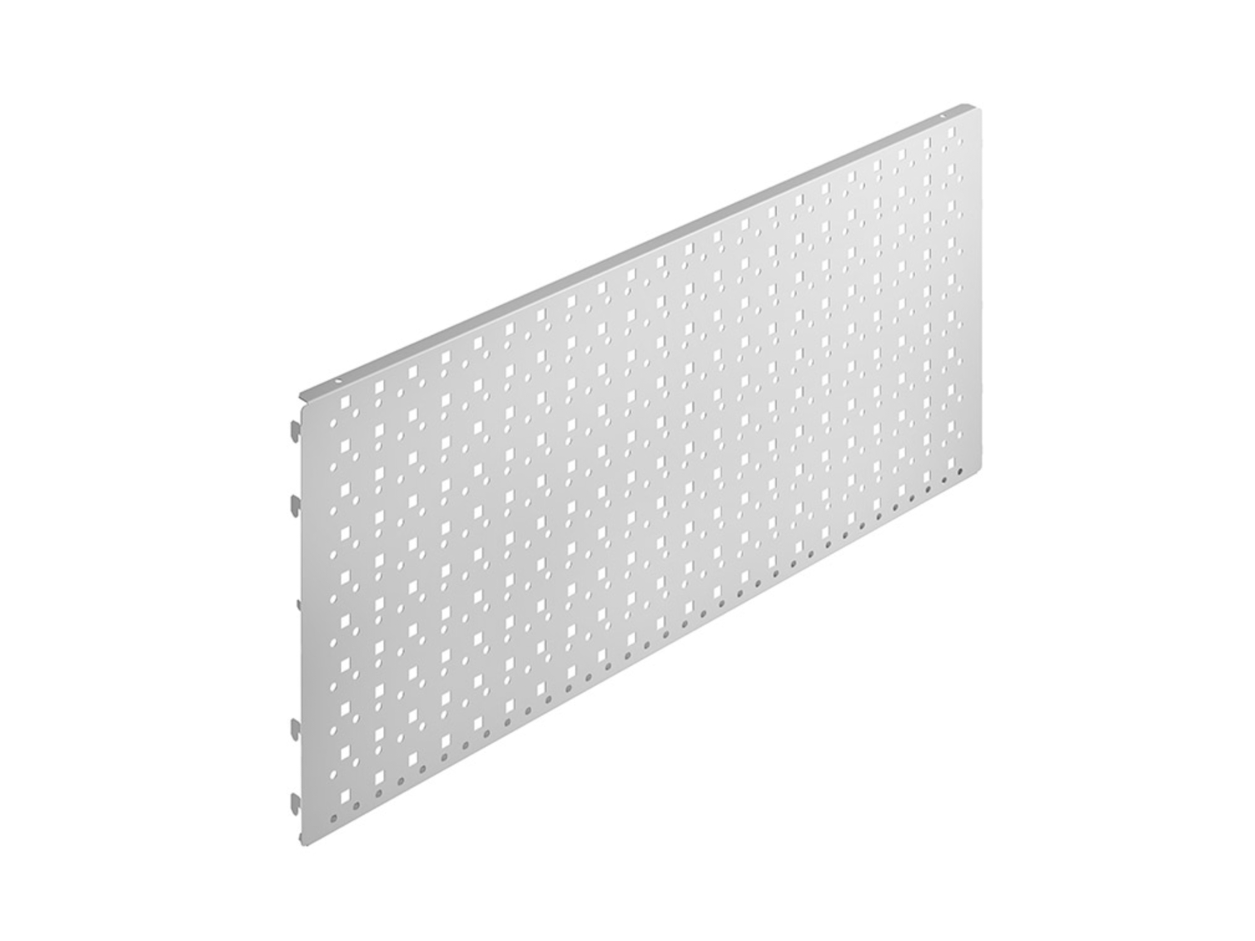 Tấm bảng đục lỗ đa năng với lỗ vuông kích thước 10×10 mm, khoảng cách 38 mm, cho phép gắn được nhiều loại phụ kiện chứa dụng cụ như giá đỡ cờ lê, tua vít, mũi khoan, đầu khẩu và các kệ có kích thước khác nhau.